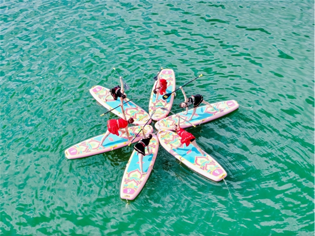 當(dāng)古老的瑜伽遇上時尚的槳板,當(dāng)柔美的倒影撫摸太鶴湖鱗鱗的水面,太鶴湖上便盛開了一朵朵絢麗的花朵。一片湖面便有一塊槳板,一塊槳板便是一片風(fēng)景!槳板瑜伽展示的不僅是時尚之美,更是健康之美!