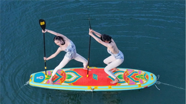 青田地處浙江省東南部,甌江中下游,山水資源豐富,水域總面積超100平方公里,水資源常規(guī)指標(biāo)遠(yuǎn)遠(yuǎn)優(yōu)于全國、全省平均水平,環(huán)湖綠帶鑲嵌著豐富的歷史人文景點,湖岸城市風(fēng)光與大自然風(fēng)光融為一體,槳板與瑜伽擦出水上火花。