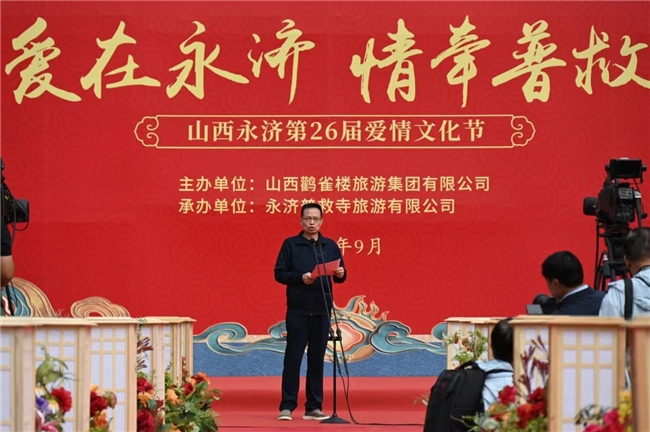 9月 21 日,普救寺迎來(lái)了第 26 屆愛(ài)情文化節(jié)的盛大開(kāi)幕式。開(kāi)場(chǎng)節(jié)目《蒲州花傘》瞬間將人們帶入了濃郁的地域風(fēng)情之中。隨后,主持人隆重介紹到場(chǎng)領(lǐng)導(dǎo)嘉賓。永濟(jì)市政府黨組成員崔子龍發(fā)表了誠(chéng)摯而熱情的致辭,表達(dá)了對(duì)愛(ài)情文化節(jié)的美好祝愿和對(duì)永濟(jì)文化旅游事業(yè)的殷切期望。市委宣傳部部長(zhǎng)李朝霞宣布開(kāi)幕,正式拉開(kāi)了本次愛(ài)情文化節(jié)的精彩帷幕。