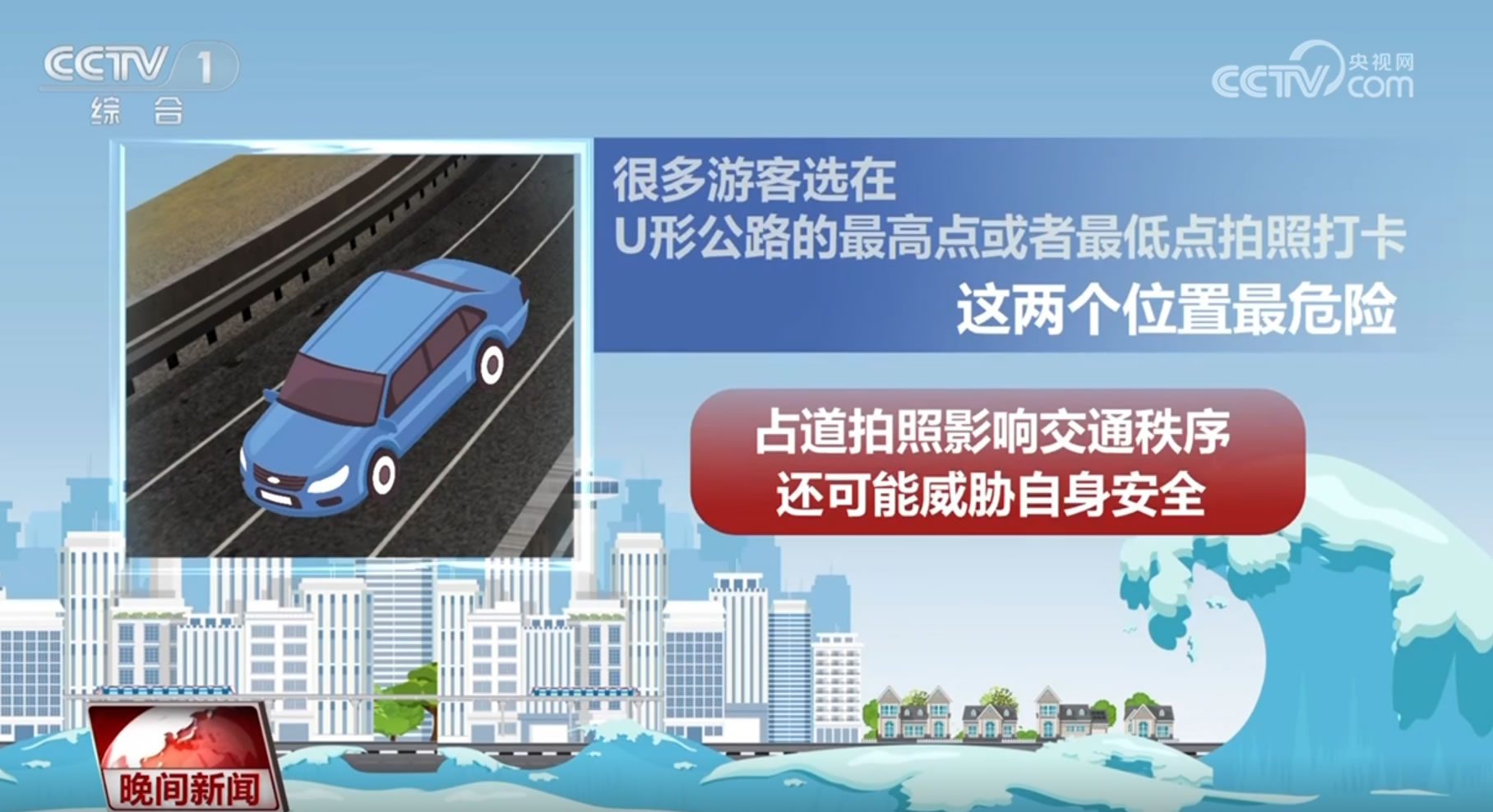誤區(qū)三:將車停在路邊,在道路中間拍照,不會影響交通就行。很多游客選在U形公路的最高點或者最低點拍照打卡,而這兩個位置恰恰最危險。占道拍照影響交通秩序,還可能威脅自身安全。