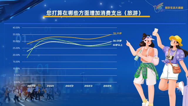 《美好生活大調查》發(fā)現(xiàn),2024年在國人消費意愿榜上,旅游又一次站到了榜首的位置。這已經是5年來,旅游第三次站在消費意愿榜的第一名,今年更是達到了5年來的最高點。