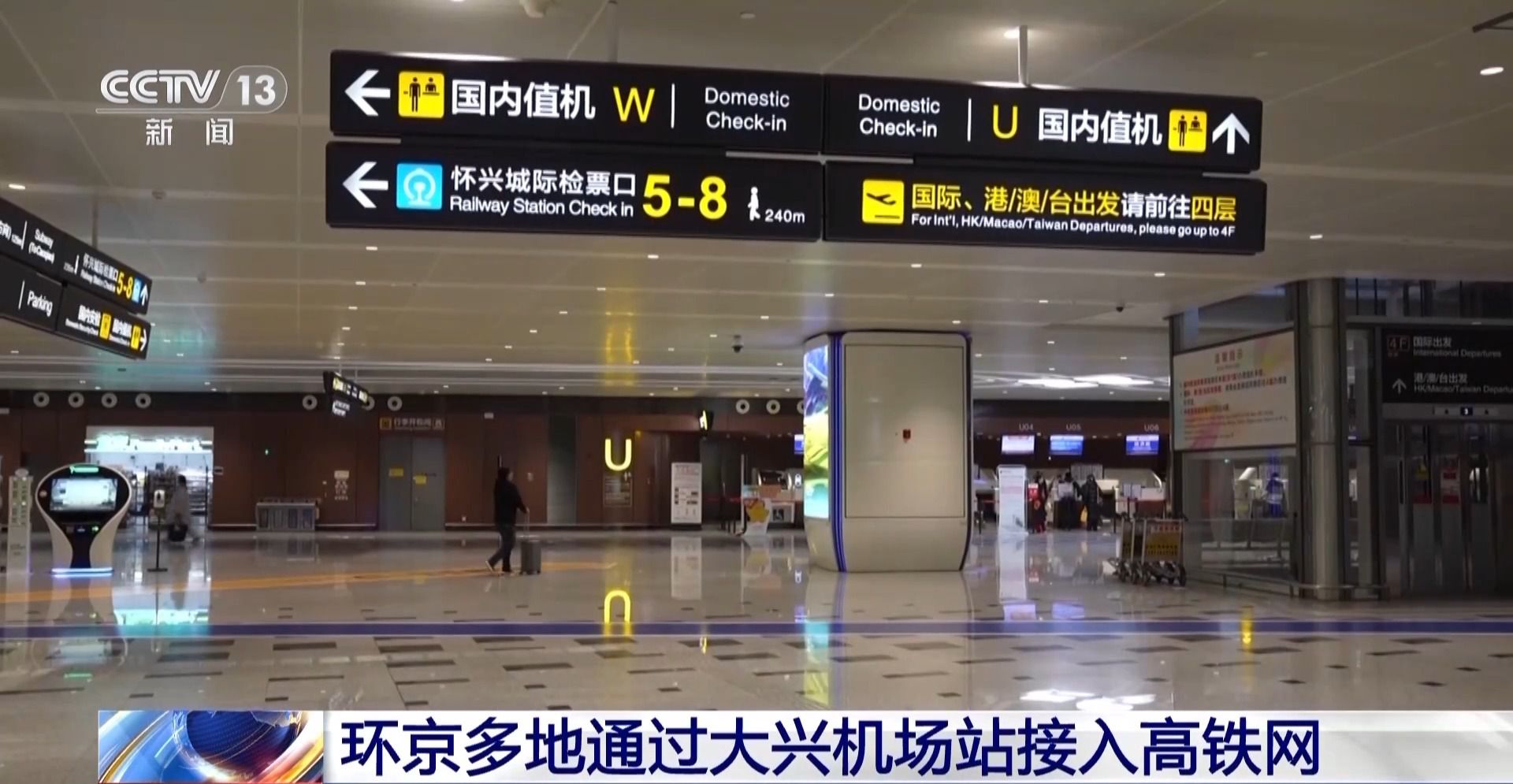 北京大興國(guó)際機(jī)場(chǎng)公共區(qū)管理部業(yè)務(wù)經(jīng)理 焦永杰:為加強(qiáng)城際鐵路大興機(jī)場(chǎng)站與大興機(jī)場(chǎng)的信息共享,我們將列車動(dòng)態(tài)信息顯示前置航站樓。后期大興機(jī)場(chǎng)與鐵路部門將繼續(xù)加強(qiáng)業(yè)務(wù)互動(dòng)與信息共享,持續(xù)提升列車與航班在運(yùn)力、時(shí)刻方面的匹配度。