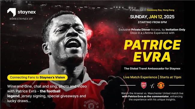 新加坡STAYNEX.VIP WEB3酒店入駐平臺攜手曼聯(lián)傳奇球星在香港銅鑼灣高級私人會所將舉辦2025年高級VIP跨年榮譽(yù)晚會。