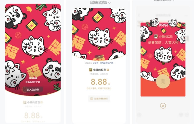 當(dāng)下微信發(fā)紅包搶紅包已成特有的新春社交儀式,據(jù)微信官方數(shù)據(jù)顯示,2024年除夕夜微信用戶共搶到微信紅包50.8億個(gè),發(fā)送拜年紅包1.9 億次,各大品牌也紛紛推出微信紅包封面,為用戶的拜年社交增添喜氣。蛇年新春,MOKO與插畫家 Cheeky Cheeky 厚面子合作,延續(xù)萌爆漫畫風(fēng),由厚面子 Cosplay 新年吉祥物招財(cái)貓和頂流大熊貓,在紅包封面上盡顯魅力。新年前分階段陸續(xù)發(fā)放1.5萬個(gè)微信紅包封面,為今年的拜年增添滿滿萌趣,拆開紅包的親友,不僅能解鎖MOKO超值新春旅客專屬福利,還能再次回味此前深受用戶喜愛的國(guó)風(fēng)熊貓視頻。