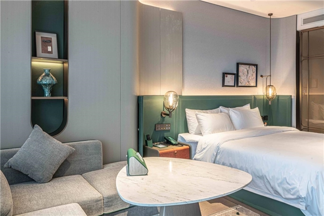 客房設(shè)計同樣體現(xiàn)了高端酒店的精致與舒適,每間客房均采用開放式布局,空間開闊,搭配定制照明系統(tǒng),營造溫馨私密氛圍。智能控制系統(tǒng)讓賓客可輕松調(diào)控?zé)艄、溫度及娛樂設(shè)備,科技融入自然流暢。浴室配備豪華衛(wèi)浴設(shè)施與高品質(zhì)洗浴用品,保障尊貴洗浴體驗。全景落地窗設(shè)計更是將武漢沙湖美景引入室內(nèi),讓賓客足不出戶即可飽覽城市風(fēng)光。
