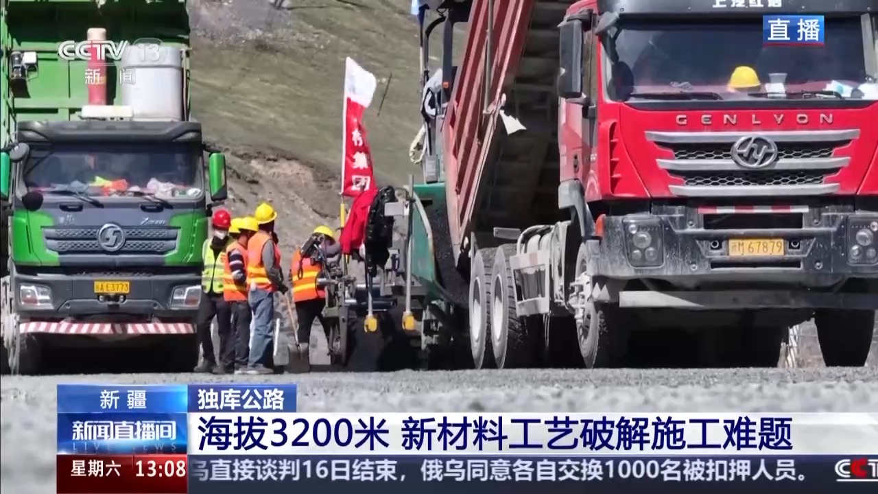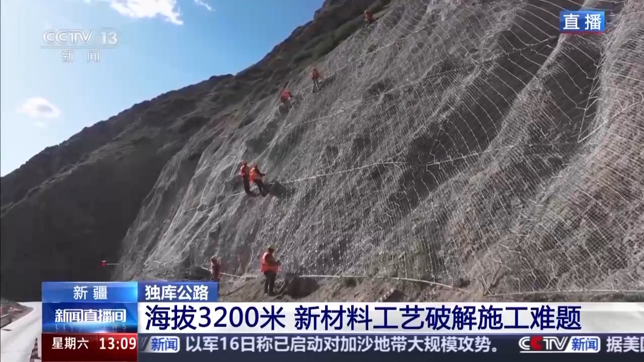 總臺(tái)記者 高鵬飛:這里是新疆獨(dú)庫公路的南線,也就是庫車段,所站立的位置是獨(dú)庫公路的鐵力買提達(dá)坂,這里的海拔超過3200米。就在前幾天,這里的清雪作業(yè)全部完成,阿克蘇的公路部門對(duì)所管轄的獨(dú)庫南線181公里的道路進(jìn)行養(yǎng)護(hù)修復(fù)工作,現(xiàn)在施工來到了最難的路段,鐵力買提達(dá)坂。