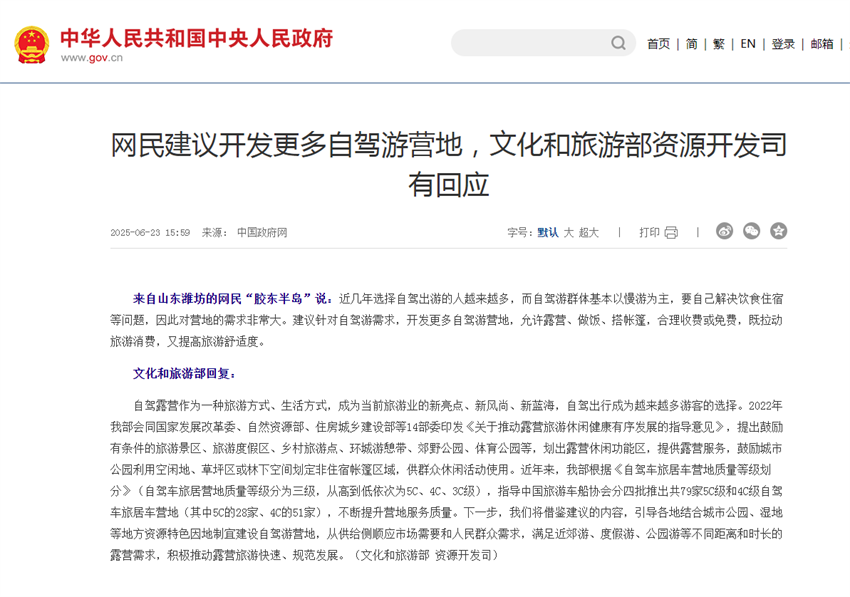 下一步,我們將借鑒建議的內(nèi)容,引導(dǎo)各地結(jié)合城市公園、濕地等地方資源特色因地制宜建設(shè)自駕游營地,從供給側(cè)順應(yīng)市場需要和人民群眾需求,滿足近郊游、度假游、公園游等不同距離和時(shí)長的露營需求,積極推動(dòng)露營旅游快速、規(guī)范發(fā)展。