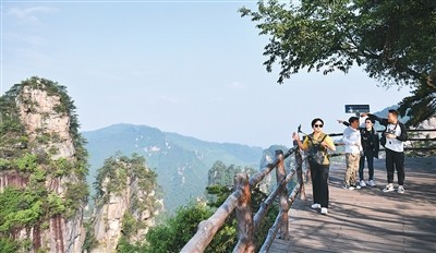 韓國(guó)游客在湖南張家界國(guó)家森林公園黃石寨景區(qū)游覽。
