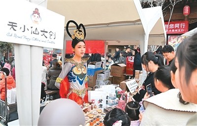 游客在甘肅天水“天水麻辣燙吃貨節(jié)”現(xiàn)場(chǎng)選購(gòu)文創(chuàng)產(chǎn)品。