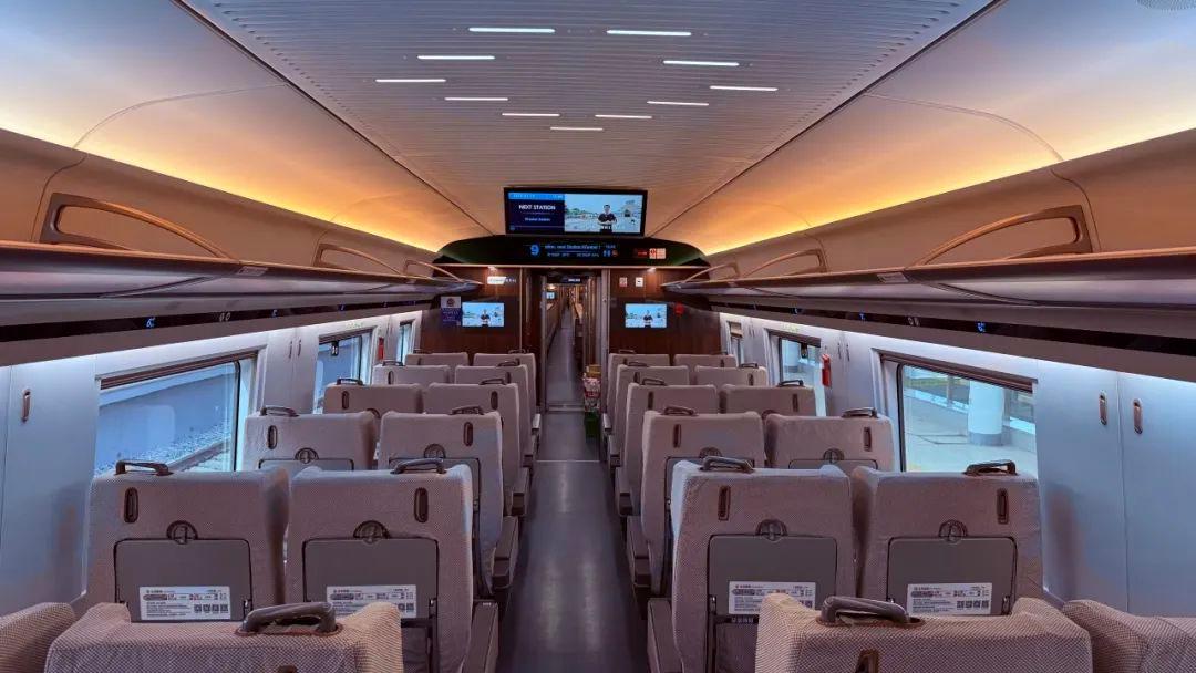 以復興號智能動車組為例:二等座通常采用“3+2”式排列,從左到右依次是ABCDF,A和F靠窗,C和D靠過道,B座位于A和C座位中間。