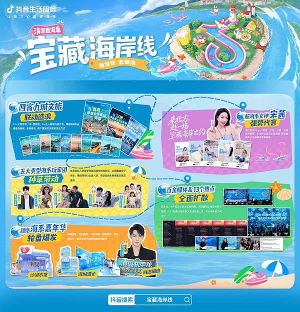 當(dāng)海浪與城市共鳴,當(dāng)流量與體驗(yàn)共振,抖音生活服務(wù)聯(lián)合四省九城打造了一場(chǎng)「寶藏海岸線」文旅盛宴,交出了一份令人矚目的答卷。從政府到商家,從明星到達(dá)人,從線上種草到線下狂歡,這場(chǎng)以“海”為核的超級(jí)IP,不僅激活了海岸經(jīng)濟(jì)的新動(dòng)能,更重新定義了夏季海濱生活的無限可能。