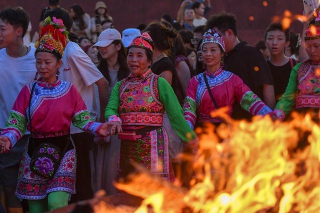 “不用懂專業(yè)舞步,跟著大家一起,怎么開(kāi)心怎么跳!” 在大理州巍山縣拱辰樓廣場(chǎng),躍動(dòng)的篝火映紅了古老的城墻,來(lái)自西安的游客劉欣已融入當(dāng)?shù)貞c祝火把節(jié)的彝族打歌隊(duì)伍中。“打歌隊(duì)員帶領(lǐng)大家圍著篝火唱跳,簡(jiǎn)直太開(kāi)心了!”她說(shuō)。