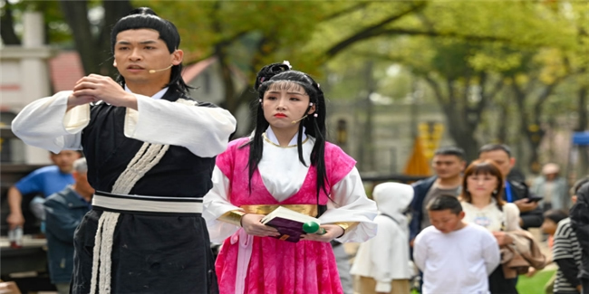 除了觀戰(zhàn),游客還能親身參與,闖關(guān)贏取限定盲盒。大會設(shè)置了俠客集影,江湖錄蹤,尋秘論劍三大趣味武俠關(guān)卡。