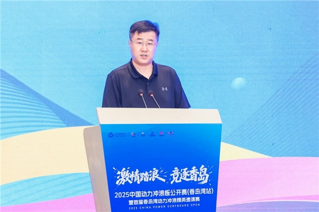 發(fā)布會上,萊陽市人民政府副市長李誠首先發(fā)表致辭,對蒞臨現場的各位領導、嘉賓及媒體朋友表達了誠摯的歡迎與感謝。他強調,動力沖浪板運動作為時尚、刺激與科技完美融合的新興水上項目,近年來在全球范圍內迅速崛起,深受廣大青年及戶外運動愛好者的青睞。中國動力沖浪板公開賽作為國內頂級賽事,歷經多屆積淀,已擁有深厚的辦賽底蘊與廣泛的社會影響力。香島灣站的設立及首屆香島灣動力沖浪精英邀請賽的創(chuàng)辦,旨在積極響應國家全民健身戰(zhàn)略,推動水上運動的普及與提升,深化體育與旅游的融合發(fā)展,進一步彰顯香島灣地區(qū)的魅力與知名度。