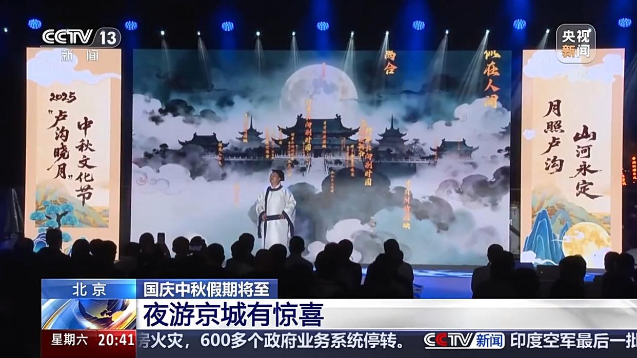 夜幕降臨,宛平城燈火璀璨,一場中秋文化演出在盧溝橋廣場熱鬧上演。創(chuàng)意歌舞、情景劇、經(jīng)典詩詞誦讀等節(jié)目點(diǎn)燃了觀眾們的熱情。除了看演出,還能逛集市。600多米的街道上,各式攤位整齊排布,迎接各地游客。