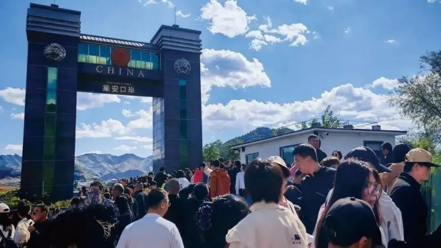 鴨綠江國門景區(qū)人頭攢動(dòng)(央廣網(wǎng)發(fā) 吉林省文化和旅游廳供圖)