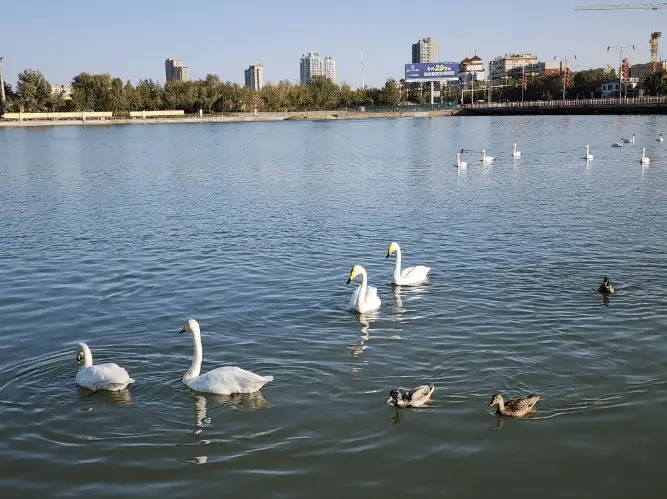 每年國(guó)慶節(jié)前后,天鵝會(huì)陸續(xù)飛抵梨城,開(kāi)啟越冬模式,今年是野生天鵝第20年來(lái)到庫(kù)爾勒越冬。近年來(lái),隨著庫(kù)爾勒生態(tài)環(huán)境不斷改善和保護(hù)力度不斷加強(qiáng),適宜的氣候、健康的水源為這些“水中精靈”營(yíng)造了安全舒適的生存環(huán)境。(馬麗娟)