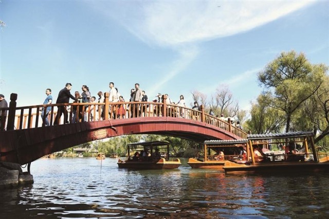 為保障游客游玩體驗,我市針對“雙節(jié)”旅游高峰,承德避暑山莊景區(qū)制定專項工作方案與預案,在麗正門加裝引導護欄保障游客有序入園,在正宮區(qū)、湖區(qū)的道路狹窄處、橋梁處增加疏導人員,通過監(jiān)控關(guān)注煙雨樓、金山、熱河泉等景點客流,人員聚集時即刻疏導、廣播分流;同時對一線工作人員開展服務(wù)禮儀培訓,推進“笑臉行動”,全面維修維護旅游服務(wù)設(shè)施、清掃環(huán)境衛(wèi)生,并調(diào)配全系統(tǒng)兩級機關(guān)人員補充到一線崗位,用細致服務(wù)讓游客游得舒心、玩得安心。