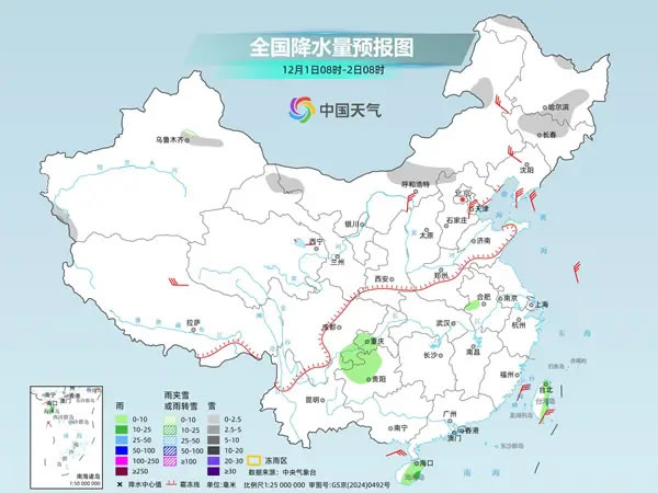 明天,內(nèi)蒙古、黑龍江北部和南部、吉林北部、新疆沿天山地區(qū)及南疆盆地西部山區(qū)、甘肅河西、河北北部等地部分地區(qū)有小到中雪或雨夾雪。四川東南部、重慶西部、貴州西北部、安徽中部、海南島、臺(tái)灣島等地部分地區(qū)有小到中雨。