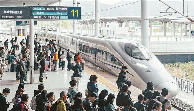 旅客在廈門北站準(zhǔn)備登上前往珠海的高鐵。(本報(bào)記者 林銘鴻 攝)