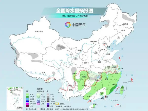 后天,降水范圍將明顯收縮,北方降水基本停歇,南方降水還將持續(xù)。預(yù)計(jì)黑龍江中部、西藏北部和東南部、甘肅西部、四川西北部、湖北南部、湖南北部、安徽南部、江蘇南部、浙江北部等地部分地區(qū)有小到中雪或雨夾雪。重慶、貴州西部、湖南中南部、江西、浙江南部、福建、臺(tái)灣島等地部分地區(qū)有小到中雨。