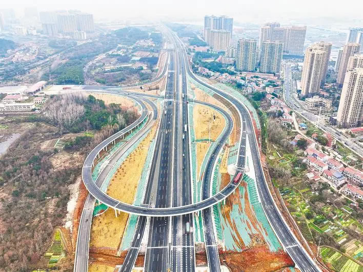 8時許,記者跟隨車流駛入嶄新的雙向八車道,以時速120公里的速度行駛依舊平穩(wěn)舒暢,視野開闊。車道兩側,黃鶴樓浮雕聲屏障、“將軍劍”“天仙配”等12座文化雕塑依次呈現(xiàn),服務區(qū)、收費站、天橋等建筑中融入荊楚文化元素,紅色文化、農耕文化、知音文化點綴其間。