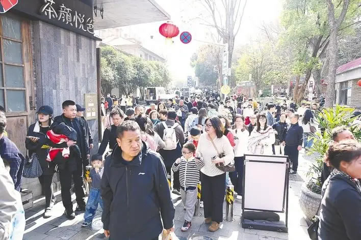 2月20日,武漢市武昌區(qū)曇華林人聲鼎沸,大批外地游客前來領(lǐng)略武昌老城的獨特魅力。 (湖北日報全媒記者 何宇欣 攝)