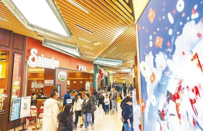 2月21日,武漢永旺夢樂城經(jīng)開店內(nèi),購物休閑的消費者絡(luò)繹不絕。 (湖北日報全媒記者 薛婷 攝)
