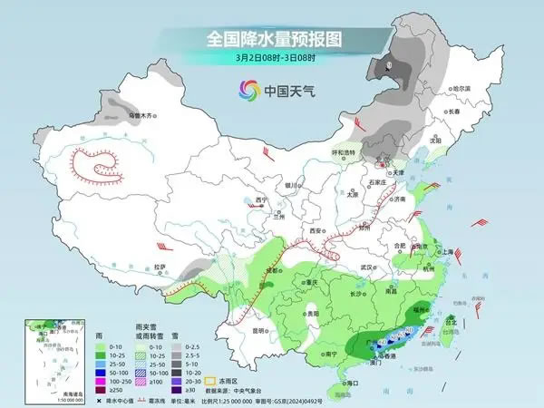 今明天(3月1日至2日),我國雨雪范圍較大,北方多地將現(xiàn)較強降雪,江南、華南降雨頻繁,部分地區(qū)仍有中到大雨,局地暴雨,公眾出行請留意交通安全。受雨雪和冷空氣影響,北方多地未來幾天最高氣溫將持續(xù)偏低,華北等地體感陰冷,需注意保暖。