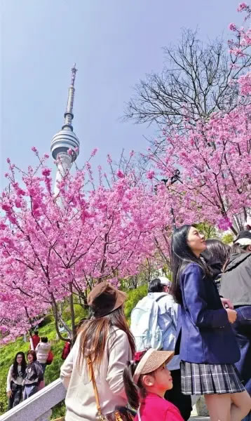 早櫻盛放 漢陽龜山公園的早櫻吸引不少游客前來拍照賞景。長江日報記者苗劍 攝