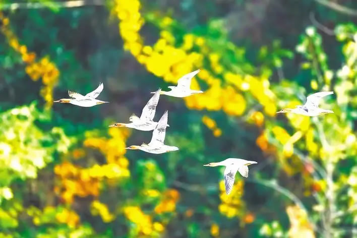 國家一級保護(hù)野生動物中華秋沙鴨已連續(xù)12年來遠(yuǎn)安越冬。 (遠(yuǎn)安沮河國家濕地公園管理處供圖)
