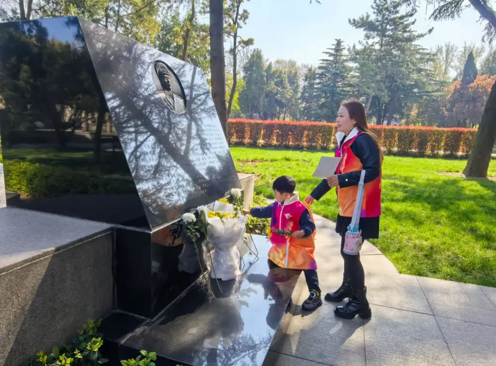 4月2日上午,參加“賡續(xù)紅色血脈 緬懷英烈偉績(jī)”清明節(jié)紅色文化沉浸式研學(xué)活動(dòng)的百余名小學(xué)生,手捧黃白菊花,依次來(lái)到紀(jì)念碑前。他們彎腰將鮮花輕輕放下,有的孩子還蹲下身來(lái),輕輕擦拭碑面浮塵。
