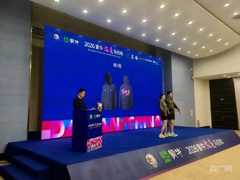 大連馬拉松新聞發(fā)布會(huì)現(xiàn)場展示參賽服(央廣網(wǎng)記者 易博聞 攝)
