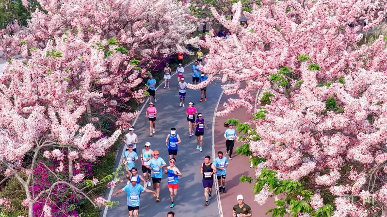 賽事期間,跑者沿異龍湖國家濕地公園綠道奔跑,湖光山色與沿線花海景觀相互映襯,為賽事增添獨特景觀體驗。據(jù)了解,當前正值石屏縣縣花神黃豆花盛花期,沿湖種植的神黃豆已形成連續(xù)景觀帶,成為賽事的一大亮點。