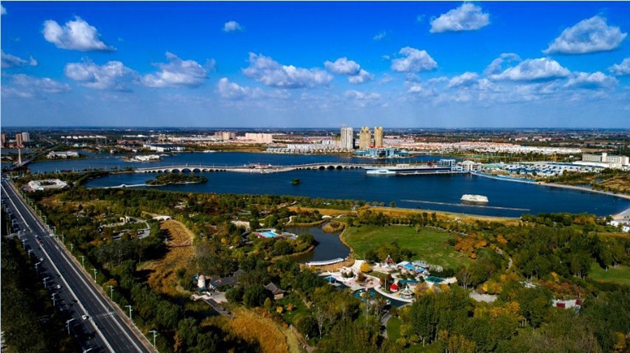 秦皇河濕地公園位于山東省濱州經(jīng)濟(jì)開發(fā)區(qū)東部,北起黃河5路,南至長(zhǎng)江11路,全長(zhǎng)7.8千米,設(shè)計(jì)寬度226米,規(guī)劃綠地面積85.9公頃,水體面積27.7公頃,總規(guī)劃面積為113.6公頃,分為河畔居城、郊野公園、沙洲濕地三大景觀區(qū)。其中,沙洲濕地景區(qū)位于長(zhǎng)江八路至長(zhǎng)江十一路段,主要通過濕地的凈化功能,將公園上游黃河水再次沉沙凈化。依托該區(qū)域現(xiàn)狀自然地形、保留原生樹種,形成大量的生態(tài)島景觀。
