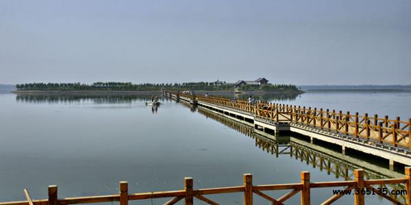 浮龍湖:位于單縣的西南部,距單縣城15公里,它南依凹凸不平的黃河故道,北接一望無際的平原,F(xiàn)屬單縣浮崗鎮(zhèn)管轄。由浮龍湖和月牙潭兩部分組成。浮龍湖呈東西狹長形狀,東西長約1⒉5公里,南北寬⒉5公里,面積3⒈26平方公里,水深約⒊5-5米,月牙潭呈狹長形狀,面積約5平方公里。浮龍湖和月牙潭水面積約 3⒍26公里,占浮崗鎮(zhèn)總面積的 2⒌18%。水質(zhì)純凈無任何污染。有閆潭灌區(qū)南引黃干線,小浪底焦莊水閘兩條送水途徑,長年可保持一定的蓄水量。據(jù)有關史料記載浮龍湖成型于明朝嘉靖年間的黃河決口,黃河在此決口一瀉千里,沖積成兩個大洼地,隨著黃河的改道和地質(zhì)地貌變動,形成兩個相對獨立的封閉的大潭坑,在當?shù)亓鱾髦犊由畈灰姷字蓖|海龍宮,每逢農(nóng)歷2月22日龍?zhí)ь^時,龍王派其四子來此處察看民情的傳說。