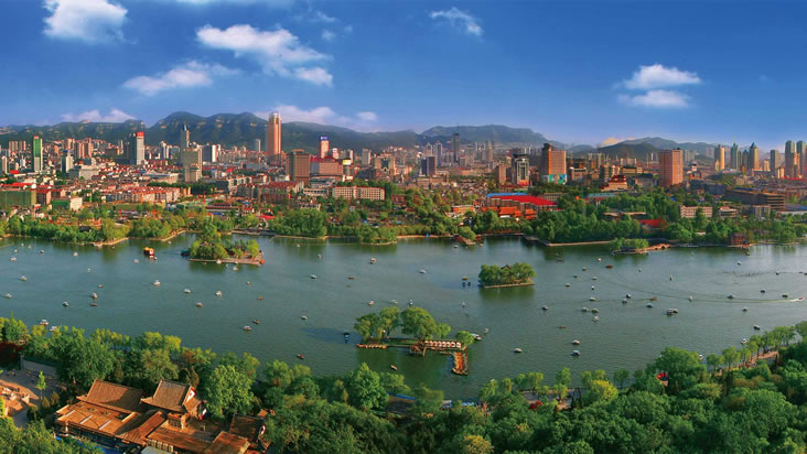 明洪武九年(1376年),濟南成為山東省會。民國十八年(1929年)7月,正式設(shè)立濟南市 。濟南市是國家歷史文化名城,因地處古四瀆之一“濟水”(故道為今黃河所據(jù))之南而得名。遠(yuǎn)在9000年前的新石器時代早期,已有先民在此繁衍生息。距今4000至4500年前以磨光黑陶為特征的“龍山文化”,系因民國十七年(1928年)首次發(fā)現(xiàn)于濟南東郊龍山鎮(zhèn)而被命名。濟南是中國人民解放軍北部戰(zhàn)區(qū)陸軍機關(guān)駐地、環(huán)渤海經(jīng)濟區(qū)和京滬經(jīng)濟軸上的重要交匯點,華東地區(qū)重要的交通樞紐之一。濟南因境內(nèi)泉水眾多,擁有“七十二名泉”,素有“天下第一泉”和“四面荷花三面柳,一城山色半城湖”的美譽,濟南八景聞名于世,超然樓是明湖新八景之一,是網(wǎng)紅打卡地,是擁有“山、泉、湖、河、城”獨特風(fēng)貌的旅游城市。