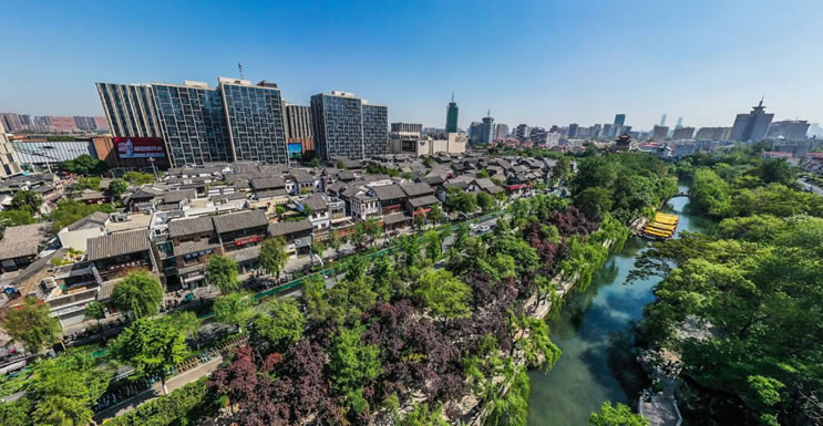濟南老城的泉水分布最為密集,十大泉群中,僅有老城就占有4個,基本上是現(xiàn)今游船環(huán)城一圈的區(qū)域:從黑虎泉出發(fā),經(jīng)泉城廣場—西門—五龍?zhí)丁竺骱珗@北側(cè)—老東門—青龍橋,密布著大大小小100多處天然甘泉,匯流成的護城河流淌到大明湖,與周圍的千佛山、鵲山、華山等構(gòu)成了獨特的風(fēng)光,也成為少有的集“山、泉、湖、河、城”于一體的城市,自古就有“家家泉水,戶戶垂柳”、“四面荷花三面柳,一城山色半城湖”的美譽。