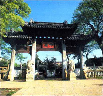 孟子對(duì)孔子有過這樣的評(píng)價(jià):“孔子之謂集大成。集大成者,金聲而玉振之也。金聲也 者,始條理也;玉振之也者,終條理也”!敖鹇暋、“玉振”表示奏樂的全過程,以擊鐘(金聲)開始,以擊磐(玉振)告終。以此象征孔子思想集古圣先賢之大成,贊頌孔子對(duì)文化的巨大貢獻(xiàn)。因此,后人把孔廟門前的第一座石坊命名為“金聲玉振”。
