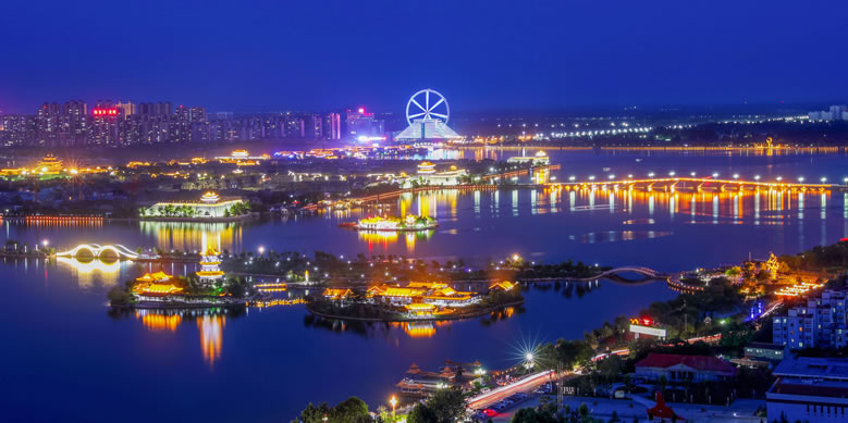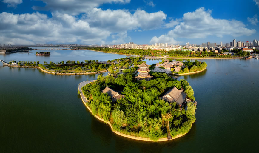 國家4A級旅游區(qū)、山東省重點(diǎn)服務(wù)業(yè)園區(qū)、山東省生態(tài)漁業(yè)示范園、國家垂釣基地,也是“江北水城·運(yùn)河古都——生態(tài)聊城”城市品牌的核心區(qū)域。位于聊城市中心城區(qū),由10個湖區(qū)和20塊水面組成,總面積6.3平方千米,湖岸線長達(dá)16千米,有“南有西子,北有東昌”之美譽(yù),是中國江北地區(qū)罕見的大型城內(nèi)湖泊。東昌湖湖始于北宋熙寧三年(1070年),水深平均達(dá)3米,最深處5米。水質(zhì)清澈,景色宜人,適宜水上游樂項(xiàng)目的開發(fā)與建設(shè)。