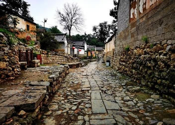 從進(jìn)村的第一道門——禮門開始,便是保留至今的明代始建的古道。山石鋪就的古道中央,嵌有兩溜大塊青石,形似鐵路,村民們形象地稱其為“雙軌”古道!半p軌”不為好看,而有其獨(dú)特的用途。早年村里就規(guī)定,走路必須靠右行,兩股道自然也分成了上下行,這與今天的交通規(guī)則不謀而合。古道的盡頭便是連接各家各戶的小徑,為了防滑,斜坡上的道心用的是沙石而不是青石。有趣的是,在村的中央,還有兩座清康熙年間修建的青石拱橋,上下皆可行人走車馬,大雨時(shí),橋下亦可行洪。橋身青石壘砌,不用灰漿,雖有三百余年的歷史,依然堅(jiān)固如初。有專家說這是現(xiàn)代立交橋的雛形?吹贸鲞@小小的山村從始建之初就經(jīng)過高人指點(diǎn),充分體現(xiàn)了“天人合一”的人文情懷。