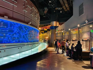 該層主要設(shè)有兩個IMAX科學(xué)影院(IMAX三維巨幕影院和球幕影院)、張江創(chuàng)新成果展、快餐廳。地下一層是該館服務(wù)設(shè)施最集中的公共區(qū)域,內(nèi)有售票大廳、大食代美食天地、休閑長廊和臨展大廳。此外,也在該區(qū)域中。上海科技館設(shè)有外來展覽專用場地,該場地位于上?萍拣^內(nèi)B1層,面積約1200平方米,水電供應(yīng)齊全,展覽區(qū)域設(shè)有專用通道和售票點。臨展館是理想的展覽、展示的場地,參展商可獨立舉辦,也可與科技館共同策劃組織協(xié)辦和合辦各類科普、科技展覽以及科技成果展示。