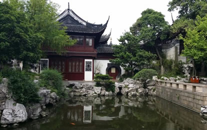 玉華堂:面對(duì)玉玲瓏,這是明時(shí)豫園主人潘允端的書齋。匾額上的“玉華”兩字,系集明代書畫家文征明的墨跡所成。現(xiàn)堂內(nèi)仍按明代書房擺設(shè),陳列的書案、方桌、靠椅、躺椅都是明清遺留下來的紅木家具。