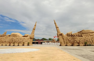 勝利大道全面反映抗戰(zhàn)時期八路軍戰(zhàn)士英勇抗敵,與日軍斗智斗勇,最終取得勝利的畫面。畫面包括:地道戰(zhàn)、地雷戰(zhàn)、小兵張嘎、雞毛信、鐵道游擊隊(duì)、雁翎隊(duì)、狼牙山五壯士、白求恩、聶耳(義勇軍進(jìn)行曲)、黨的兒女、歡慶勝利、支援前線、雙槍李向陽、百團(tuán)大戰(zhàn)、送子參軍、消息樹、紅燈記等21 組雕塑。