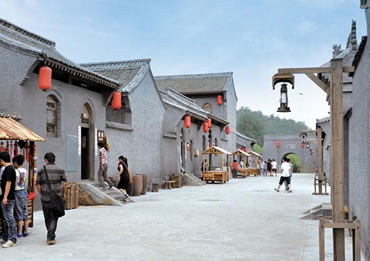 八路村村落建筑總體鳥瞰呈“路”字型,這里高度濃縮八路軍的戰(zhàn)斗精神和光輝業(yè)績,是一個繼承和發(fā)揚(yáng)八路軍文化,進(jìn)行愛國主義教育及精神文明教育的生動課堂,突出八路軍的軍旅生活、文化生活,文藝創(chuàng)作、抗戰(zhàn)宣傳、文化教育,軍工生產(chǎn)、政權(quán)建設(shè)、新聞出版和商貿(mào)服務(wù)等內(nèi)容。