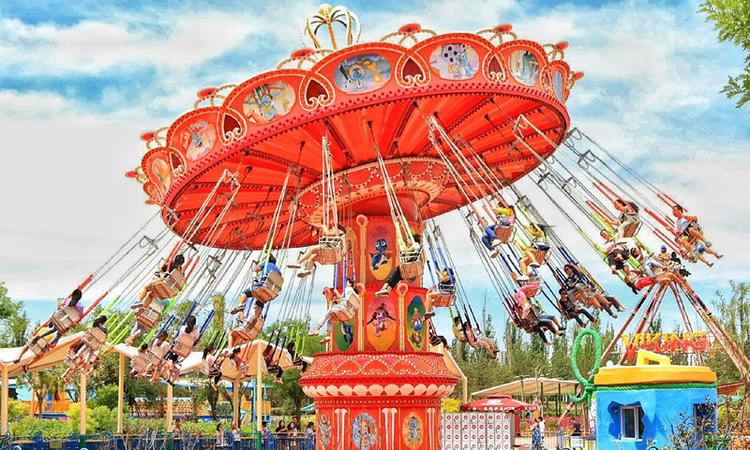 在優(yōu)美、輕快的旋律中,碩大的轉(zhuǎn)盤和轉(zhuǎn)臺(tái)錯(cuò)向旋轉(zhuǎn)、搖擺,隨著轉(zhuǎn)盤的搖擺,塔身徐徐上升。此時(shí),穩(wěn)坐飛椅的游客在離心力的作用下,上下飛旋,時(shí)而像在藍(lán)天翱翔,時(shí)而像在海上沖浪,能感受到騰云駕霧的快感。想體驗(yàn)兒時(shí)蕩秋千的感覺嗎,想體驗(yàn)在空中展翅飛翔的暢快嗎,那就來到高空飛翔盡情的放聲尖叫吧……