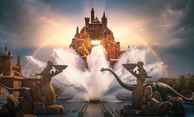 飛舞的塔羅牌、閃光的魔法陣、變成青蛙的冒失盜賊……血腥慘象迎面撲來,雙頭龍頻頻發(fā)起襲擊……這里新奇古怪又危機(jī)四伏。大型DARK RIDE表演項(xiàng)目——魔法城堡,運(yùn)用跟蹤式立體電影、虛實(shí)結(jié)合技術(shù)、魔術(shù)魔幻表演等多種表現(xiàn)手段,將一個(gè)不可思議的魔法世界呈現(xiàn)出來。