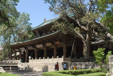 中,即中軸線,從大門入,自水鏡臺(tái)起,經(jīng)會(huì)仙橋、金人臺(tái)、對(duì)越坊、獻(xiàn)殿、鐘鼓樓、魚沼飛梁到圣母殿。這是晉祠的主體,建筑結(jié)構(gòu)嚴(yán)謹(jǐn)。