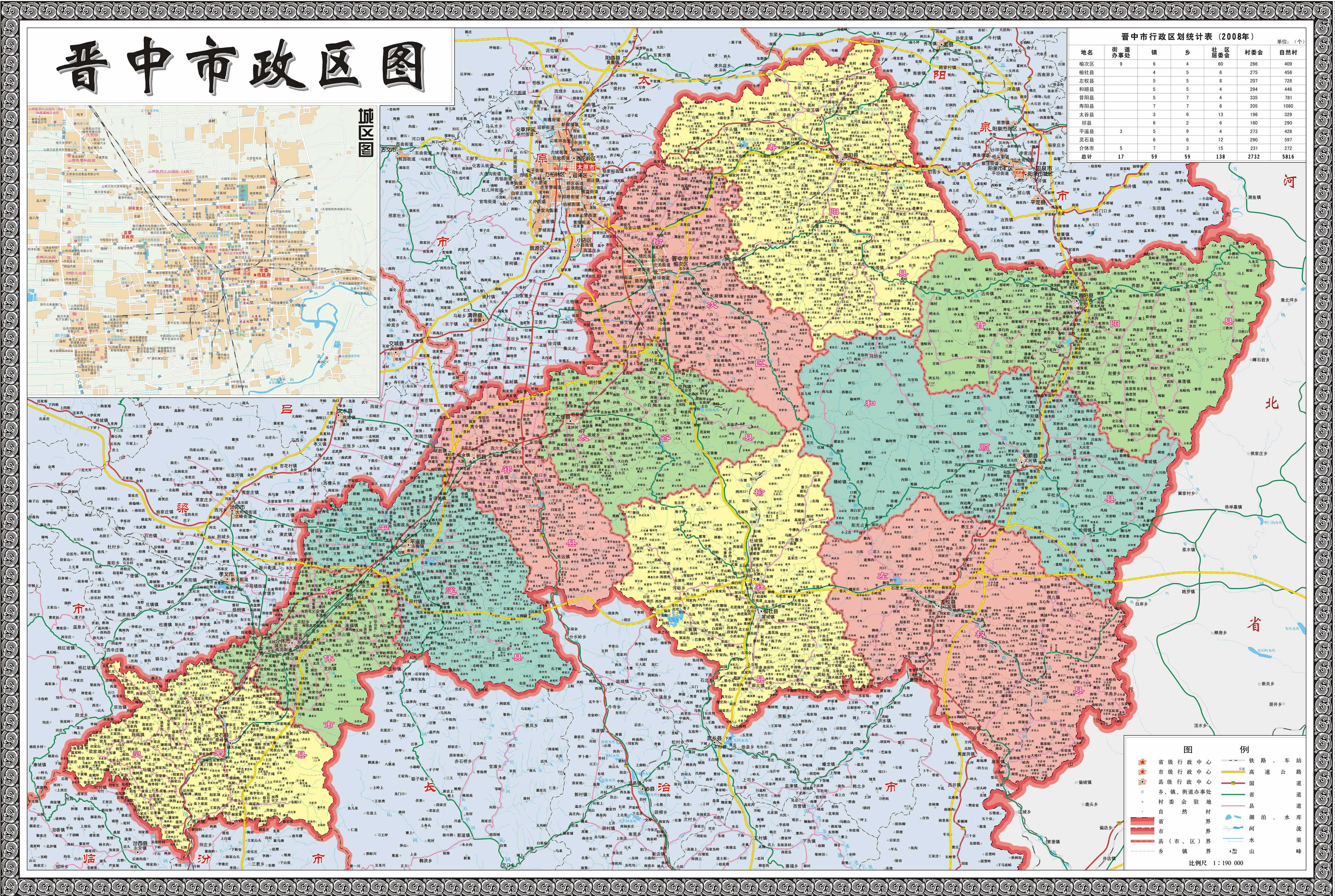 晉中市轄2個市轄區(qū)、8個縣,代管1個縣級市: