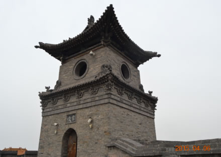 修筑于城池的城門(mén)頂,古代有時(shí)稱(chēng)“譙樓”。平遙城墻的城樓共有六座,創(chuàng)修于明代,清康熙四十二年(1703年)補(bǔ)修重筑,城樓高16.14米,寬五間13.72米,進(jìn)深四間10.04米。造型古樸、典雅,結(jié)構(gòu)端莊穩(wěn)健。城樓是城墻頂精致美觀的高層建筑,平常登高瞭望,戰(zhàn)時(shí)主將坐鎮(zhèn)指揮,是一座城池重要的高空防御設(shè)施。